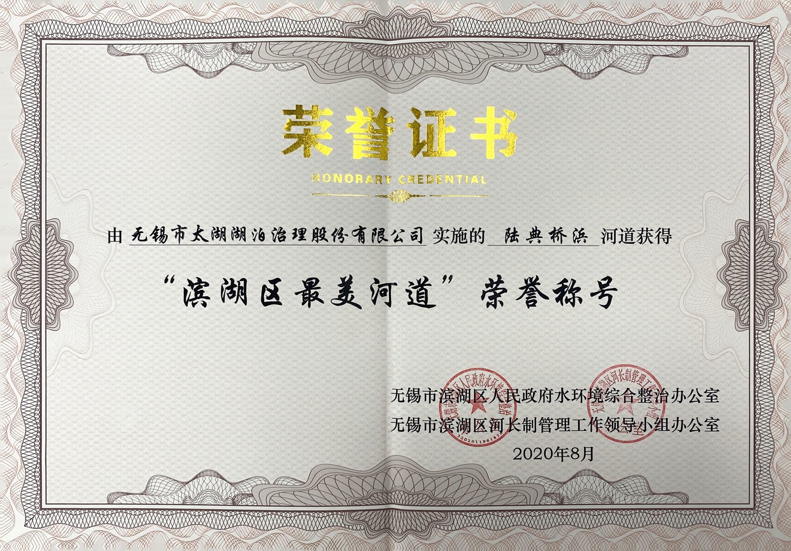陸典橋浜河道獲得“濱湖區(qū)最美河道”榮譽稱號